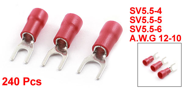 240PCS Red Insulated Fork Terminals Cable Lug AWG12-10 SV5.5-4+SV5.5-5+SV5.5-6