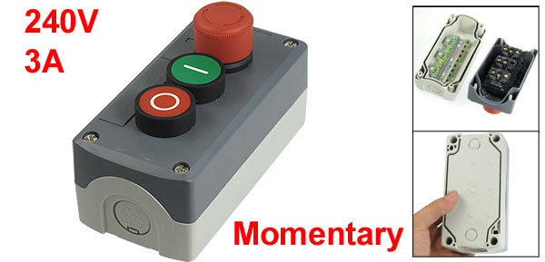 Product Name Push Button Station Action Type Red Emergency Stop and Momentary Green Red Flat Button Contact Type SPST Ith 10A Ui 600V Uimp 6KV Rated Voltage Current 240V 3A Push Button Diameter 2.5cm/1"