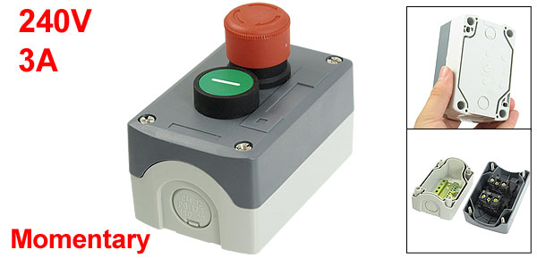 Product Name Push Button Station Action Type Red Emergency Stop and Momentary Green Flat Button Contact Type SPST 1NC 1NO Ith 10A Ui 600V Uimp 6KV Rated Voltage Current 240V 3A Push Button Diameter 3cm/1.2"