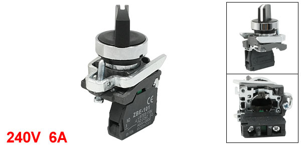 240V 6A 1NO NO SPST 2 Positions Selector Panel Mounting Rotary Switch