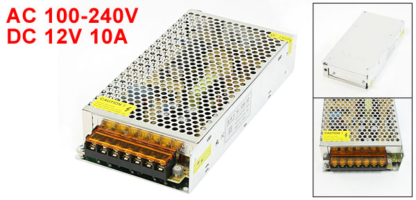 Item Name Switching Power Supply Model No. S120-12 Power Type Constant Voltage Input AC 100-240V Output DC 12V 10A Power 120W Size 20 x 9.8 x 3.8cm / 7.9" x 3.8" x 1.5" (L*W*H) Case Material Metal, Aluminum Alloy Main Color Silver Tone Net Weight 470g Package Content 1 x Switching Power Supply - Reviews