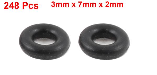 248 Pcs 3mm x 7mm x 2mm Black Rubber O Shape Rings Oil Seal Gaskets Washer
