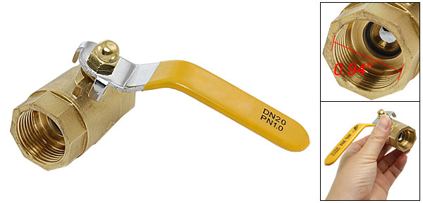 Product Name Ball Valve Material Brass, Metal Color Gold Tone, Yellow Inner Valve Hole Dia 1.5cm/ 0.59" Thread Dia 2.4cm/ 0.94" Level Handle Size 10.2 x 1.7cm/ 4" x 0.7"(L*W) Overall Size 5.2 x 3.2 x 5.5cm/ 2" x 1.2" x 2" (L*W*H) Net Weight 185g Package Contents 1 x Ball Valve - Reviews