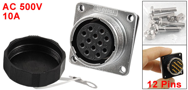 24mm Base 12 Pins Alumnium Shell Cable Aviation Connector Plug AC 500V 10A