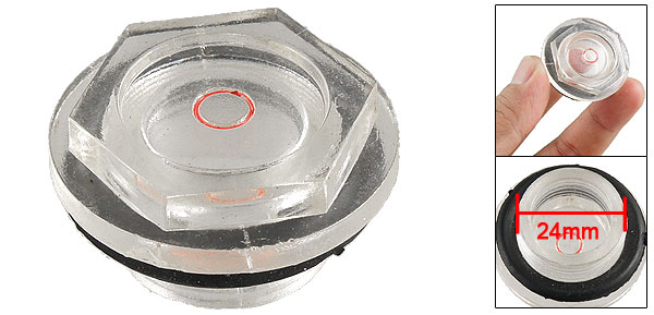 Product Name Oil Level Sight Glass Material Plastic Color Clear, Black, Red Thread Diameter 24mm/ 0.94" Overall Size 35 x 18mm/ 1.4" x 0.7" (D*T) Net Weight 10g Package Content 1 x Oil Level Sight Glass - Reviews