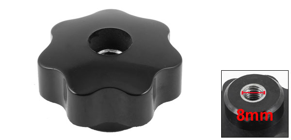Product Name Star Knob Type Screw On Head Diameter 40m/1.6" Female Thread Diameter 8mm/ 0.3" Female Thread Depth 16mm/ 0.63" Total Height 24mm/ 0.94" Material Metal & Plastic Color Black Weight 31g Package Content 1 x Star Knob - Reviews