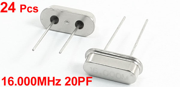 24Pcs 16.000MHz 20PF 2-Terminal Silver Tone Crystal Oscillators for PC