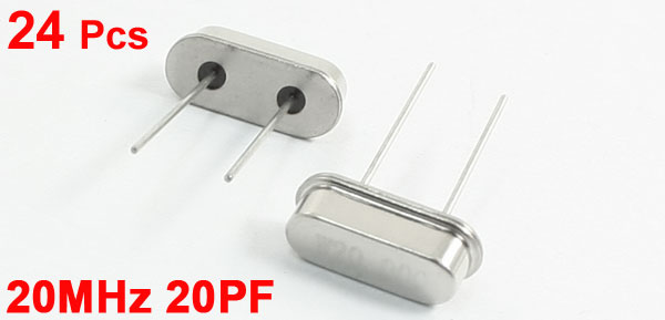 Product Name Crystal Oscillator Output Frequency 20MHz Package Type HC-49S Frequency Tolerance ±20ppm Load Capacitance 20PF Mounting Type SMD Effective Series Resistance 30ohm Pins Number 2 Operating Temperature Range -20°C to +85°C Color Silver Tone Each Size 10.5 x 4.5 x 3.3mm/ 0.41" x 0.18" x 0.13"(L*W*H) Weight 13g Package Content 24 x Crystal Oscillators - Reviews