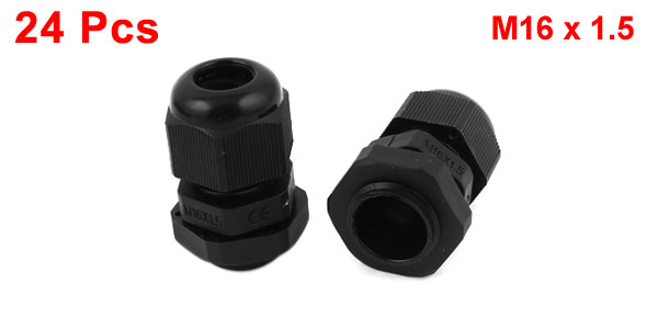 24pcs Black Plastic Waterproof Cable Glands Connectors M16 x 1.5