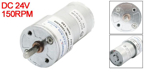 Product Name Geared Box Motor Rated Voltage DC 24V Motor Rotary Speed 150RPM Motor Pins Numbe 2 Box Shaft Size 4 x 12mm/ 0.16" x 0.47"(D*L) Female Thread Diameter 2.5mm/ 0.1" Motor Body Size 31 x 25mm/ 1.2" x 1"(L*Max.D)