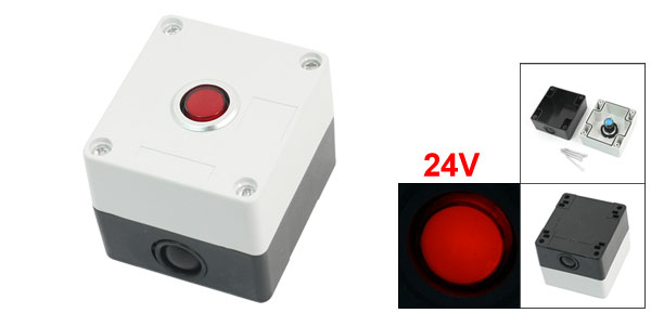 24V 2 Terminals Plastic Red Signal Indicator Light Pilot Lamp Box