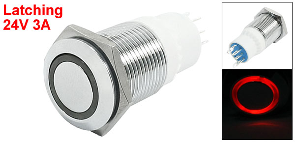Product Name Push Button Switch Model LA16 Contact Type SPDT Rating Voltage 24V 3A Actuator Type Latching Position 2(1NO 1NC) Pin Number 5 Thread Dia 16mm / 0.63 Button Dia 11mm / 0.43" Overall Size(Not Included Pin ) 33 x 19mm / 1.3" x 0.75" (L*Max.D) Material Stainless Steel Light Color Red Color Silver Tone Weight 17g Package Content 1 x Push Button Switch - Reviews