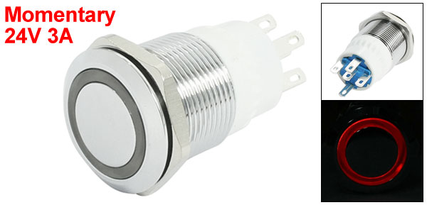24V 3A 19mm Thread Red LED Angel Eye SPDT Momentary Flat Head Push Button Switch