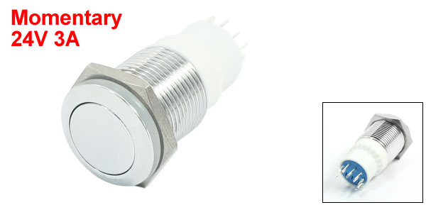 Product Name Push Button Switch Contact Type SPDT Rating Voltage 24V 3A Actuator Type Momentary Position 2(1NO 1NC) Pin Number 5 Thread Dia 15.5mm / 0.6" Button Dia 12mm / 0.47" Overall Size(Not Included Pin ) 32 x 19 x 22mm / 1.2" x 0.75" x 0.87" (L*W*H) Material Stainless Steel Color Silver Tone Weight 15g Package Content 1 x Push Button Switch - Reviews