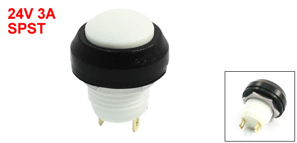 Product Name Push Button Switch Action Type Momentary Contact Type 1 NO SPST Rating Voltage 24V 3A Actuator Type Momentary Terminals Quanlity 2 Pin Thread Dia 11mm / 0.43" Button Dia 12mm / 0.47" Terminals Pitch 7mm / 0.28" Overall Size(Not Included Pin ) 20 x 18mm / 0.8" x 0.71" (D*H) Material Plastic,Metal Color Black, White Weight 4g Package Content 1 x Push Button Switch - Reviews