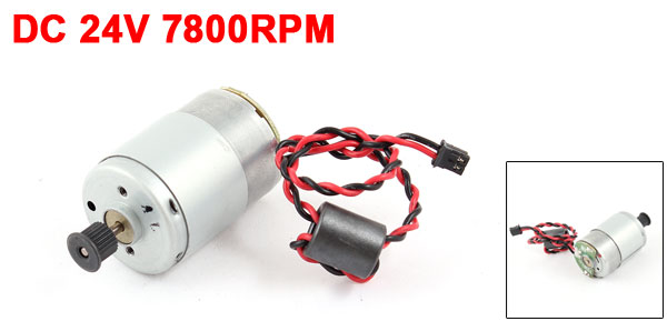 Product Name DC Geared Motor Model RS-385PH Rated Voltage DC 24V Speed 7800 RPM Current 0.05A Torque 108g.cm Shaft Diameter 2.3mm/ 0.08" Output Shaft Length 13mm/0.51" Gearbox Size 40 x 29 mm/ 1.6" x 1.1" (L*D) Wire Length 21cm/8.3" Main Color Silver Tone Material Metal, Electronic Parts Weight 90g Package 1 x DC Geared Motor - Reviews