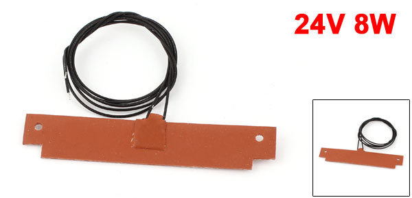 Details24V 8W Flexible Silicone Rubber Heater Heating Plate Pad 98mm x 18mm  Main Color Orange Red Country of Manufacture CHINA Power Density 0.1-1.2W/cm2 Power 8W Withstand Voltage Strength 1500V/5s Maximum Service Temperature 200C Mounting Hole Dia 3mm/ 0.12 inch Material Silicone Rubber Working Voltage 24V Power Telorence +/-8% Net Weight 9g Insulation Resistance >=50Mohm Package Content 1 x Silicone Rubber Heater Insulation Material Heat Resistance 250C (Max.) Mechanical Pressure 100kg/cm2 Wires Length 25cm/ 10 inches Size 98 x 18 x 1.5mm/ 4 x 0.7 x 0.06inches (L*W*H)