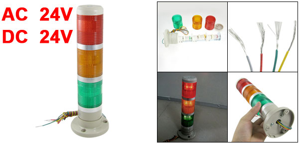 Product Name Industrial Signal Light Type Steady Rated Voltage 24V AC/DC Light Source LED Light Color Red, Yellow, Green Material Plastic, Electronic Parts Body Diameter 5cm / 2.0" Overall Size 8 x 25.5cm / 3.1'' x 10'' (Base Dia.*H) Cable Length 70cm / 27.6" Mounting Hole Diameter 0.45cm / 0.18" Body Color Red, Green, Beige Net Weight 315g Package Content 1 x Industrial Signal Light - Reviews