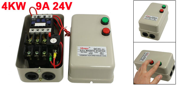 Product Name Motor Magnetic Starter Model QCX5-4KW Shell Material Metal Starter Coil:24VAC Rated Power:4KW / 5.5 HP Rated Current:9A