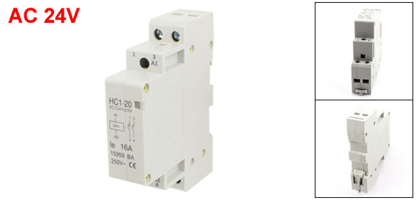 Product Name AC Contactor Model HC1-20 Rated Coil Voltage AC 24V Rated Current 16A Ue 250V Number of Poles 2 Mounting Type 35mm DIN Rail Mount Overall Size(Approx.) 82 x 28 x 65mm / 3.4" x 1.1" x 2.6"(L*W*T) Material Plastic, Electronic Parts Color Gray Net Weight 120g Package Content 1 x AC Contactor - Reviews