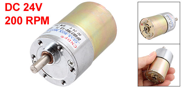 Product Name Gear Box Motor Rated Voltage DC 24V Rated Speed 200 RPM Shaft Size 15 x 6mm/0.6" x 0.2"(L*D) Motor Body Size 61 x 40mm/ 2.4" x 1.57"(L*D) Total Length(Included Pin) 89mm/ 3.5" Material Metal, Electronic Parts Color Silver Tone, Copper Tone Weight 154g Package Content 1 x Gear Box Motor - Reviews