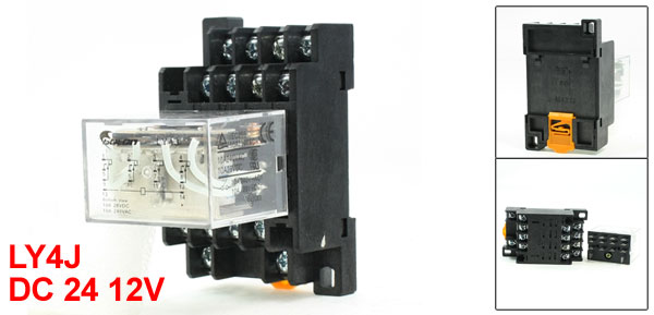 Product Name Electromagnetic Relay Model No. LY4J Coil Voltage DC 24 12V Contact Capacity 10A 240VAC/28VDC Type 4PDT Number of Terminals 14 Mount Rail Type 35mm DIN Rail Fixing Mount Hole Size 6 x 4mm/0.24" x 0.16"(L*W) Total Size (Approx.) 75 x 45 x 65mm/2.7" x 1.3" x 2.6"(L*W*H) Shell Material Plastic Main Color Black, Clear Blue Net Weight 138g Package Content 1 x Electromagnetic Relay - Reviews
