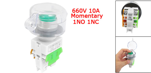 24V Green Light 1NO 1NC Momentary Clear Cover Pushbutton Switch AC 660V 10A