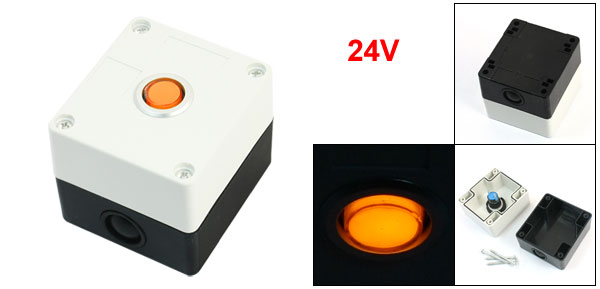 24V Rectangle White Plastic Case Orange Signal Indicator Light Lamp w Box
