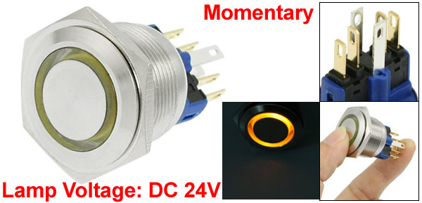 24V Yellow LED Momentary Stainless Push Button Switch 6 Pins