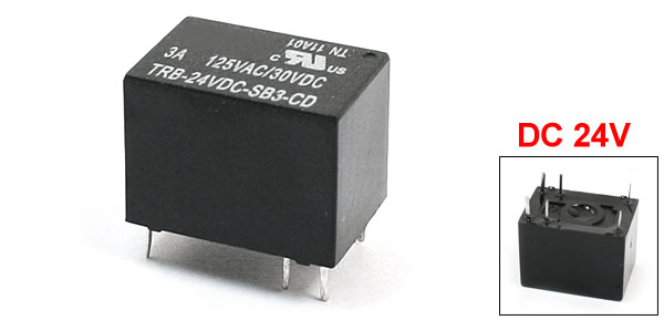 Details24VDC Coil 6 Pin Terminal SPDT PCB Board Welding Power Relay  Product Name PCB Power Relay Model TRB-24VDC-SB3-CD Coil Voltage DC 24V Rated Load 3A 30VDC/125VAC Number of Pins 6 Contact Type SPDT Size (Approx.) 15 x 11 x 10mm/0.59" x 0.43" x 0.39" (L*W*H) Color Black Net Weight 3g Package Content 1 x PCB Power Relays