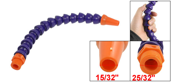 Product Name Flexible Coolant Pipe Material Plastic Male Thread Diamter 2cm / 25/32" Nozzle Outer Diameter 1.2cm / 15/32" Total Length (Approx.) 32.5cm / 12.8" Main Color Indigo Blue, Orange Weight 84g Package Content 1 x Flexible Coolant Pipe - Reviews