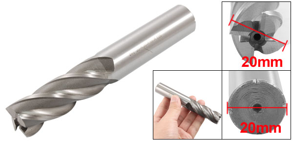 Product Name End Mill Cutter Material HSS-AL Color Gray Flute Number 4 Cutting Dia 20mm/ 25/32" Cutting Depth 55mm/ 2.16" Shank Diameter 20mm/ 25/32" Total Length 125mm/4.9" Weight 252g Package Content 1 x End Mill Cutter