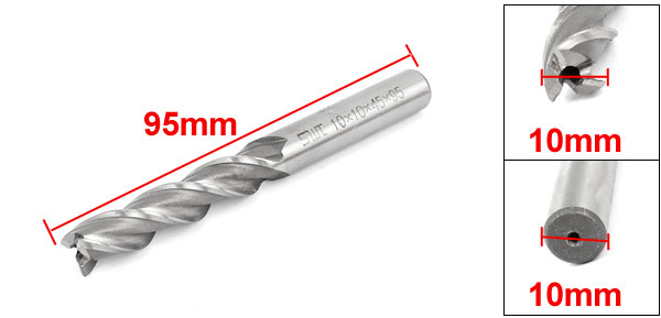Product Name End Mill Cutting Diameter 10mm / 25/64" Flute Length 45mm / 1 49/64" Shank Diameter 10mm / 25/64" Shank Length 50mm / 2" Total Length 95mm / 3 47/64" Material HSS-AL Color Silver Tone Net Weight 44g Package Content 1 x End Mill - Reviews