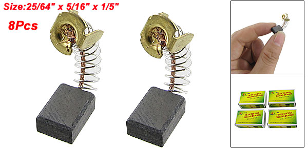 Product Name Carbon Brush Carbon Brush Size 10 x 8 x 5mm/25/64" x 5/16" x 1/5" (L*W*T) Total Length(Approx) 28mm/1.1'' (When Spring Stretching) Material Carbon & Metal Color Black & Gold Tone Net Weight 13g Package Content 8 x Carbon Brush - Reviews