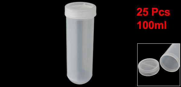 Product Name Centrifuge Tube Material Plastic Capacity 100ml Overall Size (Approx.) 12 x 3.8cm/ 4.7" x 1.5" (L*D) Color Clear White Net Weight 557g Package Content 25 x Centrifuge Tube