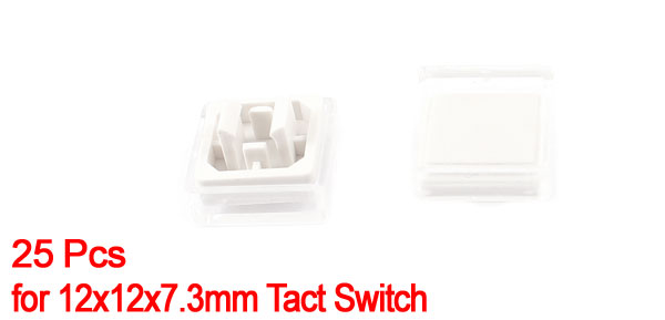 Product Name Switch Cap Plate Size 12 x 12 x 7.5mm/0.47" x 0.47" x 0.3"(L*W*T) Fit Square Switch Size for 12x12x7.3mm Tact Switch Hole Size 3 x 3mm/0.12" x 0.12"(L*W) Material Plastic Color Clear, White Net Weight 14g Package Content 25 Pcs x Switch Caps - Reviews