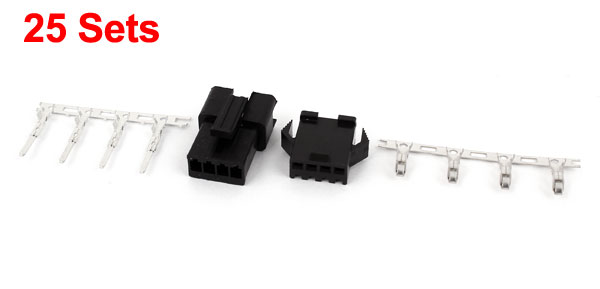 25 Sets 2.5mm Pitch 4-Pin JST SM Plug Housing w Crimp Terminal Connector