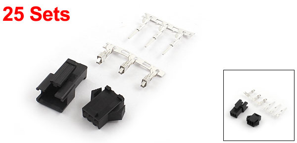 25 Sets Black Plastic Housing 3-Pin Male Female JST SM Series Connector