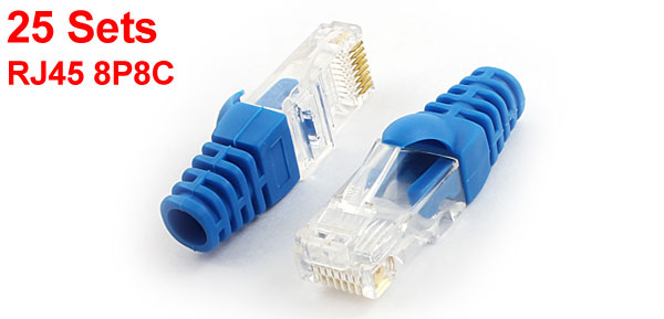 25 Sets RJ45 Cat5 Cat5e Cat6 Modular Plug Network Connector w Blue Cap Boots