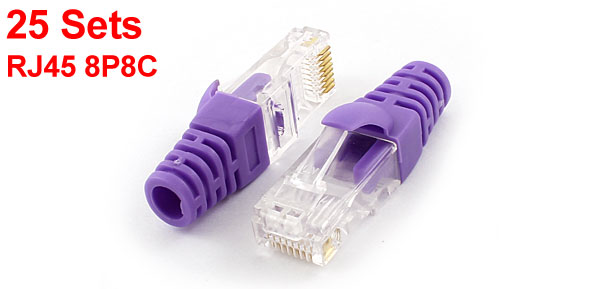 25 Sets RJ45 Network Plug Connector w Purple Boot Cover for Cat5 Cat5e Cable