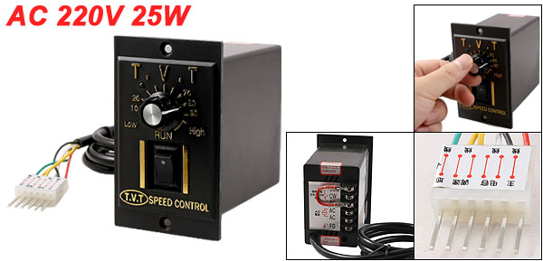 Product Name Motor Speed Controller Model US425-02 Material Plastic, Electronic Part Connector 6 Pins Rated Value AC 220V, 50HZ Power 25W Size 110 x 59 x 98mm/ 4.3" x 2.3" x .9" (L*W*H) Cable Length 60cm/ 23.6'' Color Black Weight 210g Package Content 1 x Motor Speed Controller - Reviews