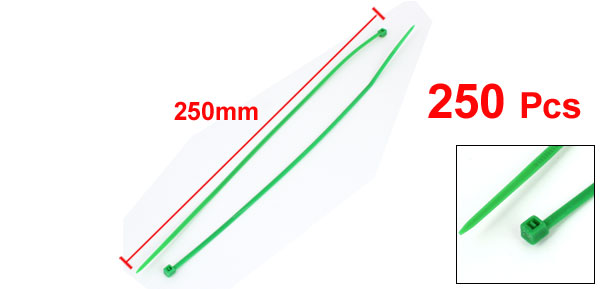 250 Pcs 4mm x 250mm Nylon Self-Locking Electric Cable Zip Ties Fastener Green