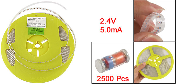 Max. Impedance 85Ω Voltage Range 2.28-2.56V Material Electric Parts Quantity 2500±2% Pcs Solder Parts Thickness 0.5mm/ 0.019" Overall Size(Each) 3.7 x 1.6mm / 0.145" x 0.063"(L*D) Reel Size 179 x 15mm / 7" x 0.6" (D*T) Color As Picture Shown Weight 142g Package Content 2500 x Zener Diodes - Reviews