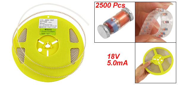 Max. Impedance 50Ω Voltage Range 16.8-19.1V Material Electric Parts Quantity 2500±2% Pcs Solder Parts Thickness 0.5mm/ 0.019" Overall Size(Each) 3.7 x 1.6mm / 0.145" x 0.063"(L*D) Reel Size 179 x 15mm / 7" x 0.6" (D*T) Color As Picture Shown Weight 143g Package Content 2500 x Zener Diodes - Reviews