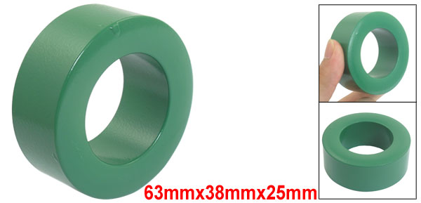 Product Name Ferrite Core Material Iron Color Green Overall Size 63 x 38 x 25mm/ 2.5" x 1.5" x 1"(Outside Dia.*Inner Dia.*T) Net Weight 233g Package Content 1 x Toroid Ferrite Core - Reviews