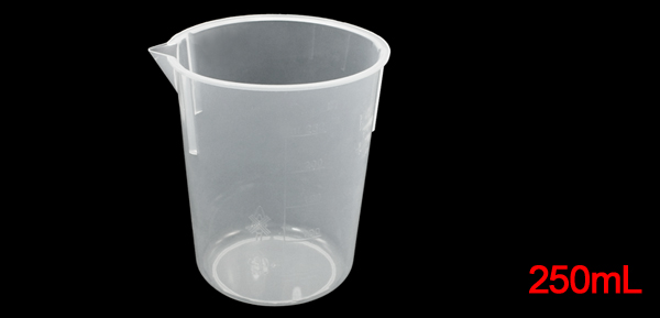 Product Name Beaker Measuring Cup Material Plastic Color Clear White Capacity 250mL Size 8.5 x 9.5 cm / 3.3" x 3.7"(D*H) Net Weight 23g Package Content