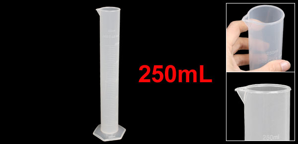 Product Name Graduated Cylinder Capacity 250mL Material Plastic Color Clear White Tube Diameter 43mm/ 1.7" Total Height 30cm/ 11.8" Base Size 8 x 7cm/ 3.1" x 2.76" (L*W) Net Weight 86g Package Content