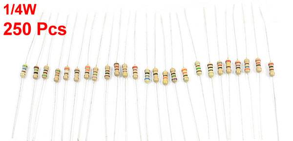(25 Values, each is 10 pcs)Tolerance +/-5% Band Number 4 Body Size 6 x 2mm/0.0.24" x 008"(L*W) Total Length 6cm / 2.4" Lead Diameter 4mm/ 0.16" Weight 33g Package Content 250Pcs (+/-2%) x Metal Film Resistors - Reviews
