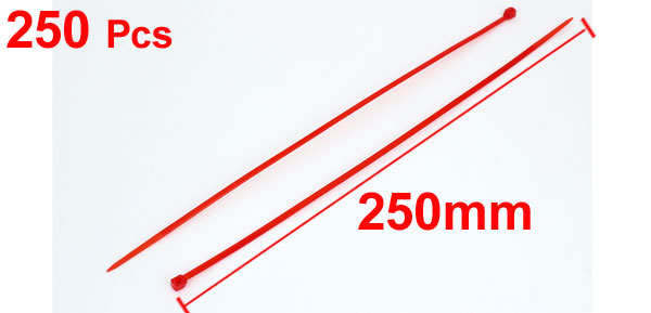 250PCS 4mm x 250mm Nylon Self-Locking Electric Cable Zip Ties Fastener Red