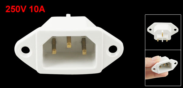 Product Name Power Inlet Socket Power Supply 250V 10A Plug Type C14 Pins Number 3 Thread Hole Diameter 3.5mm/ 0.14" Mount Hole Diameter 4mm/ 0.16" Mount Hole Distance 40mm/ 1.6"(Center to Center) Overall Size 5 x 3 x 2.3cm/ 2" x 1.2" x 0.9"(L*W*H) Material Plastic, Metal Color White Net Weight 10g Package Content 1 x Power Inlet Socket - Reviews